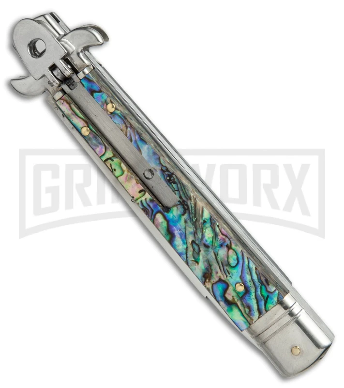 AKC 8″ Italian Stiletto Leverlock Abalone Automatic Knife – Flat