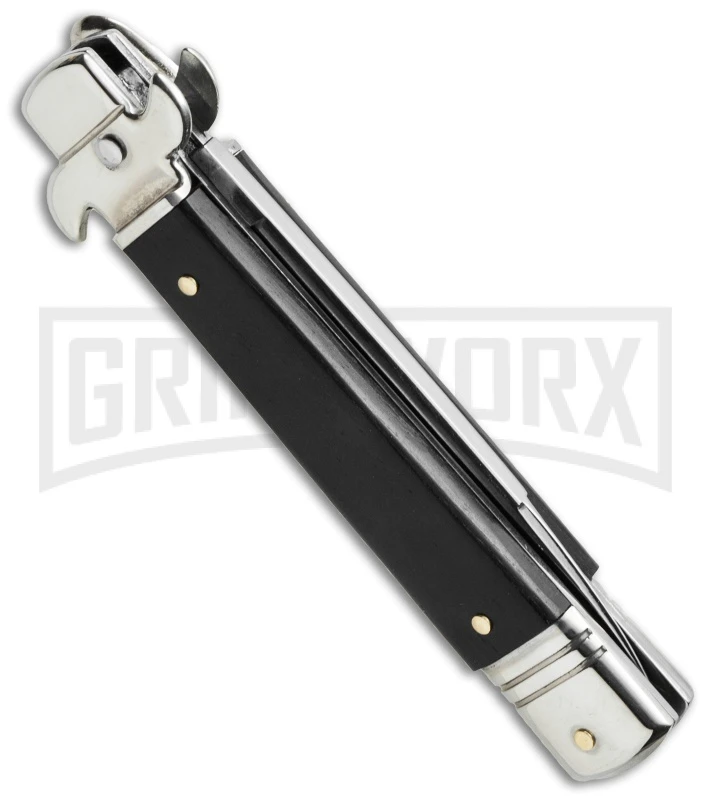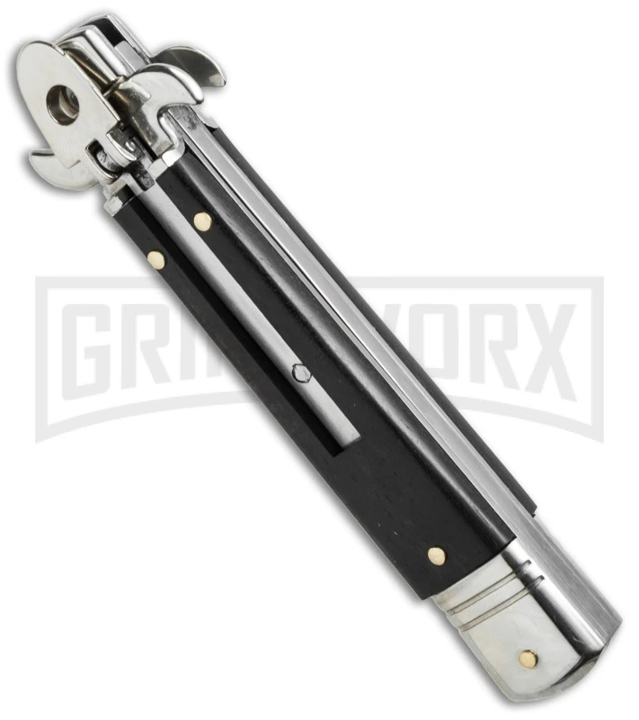 AKC Bill DeShivs 7.5″ Leverletto Ebony Wood Automatic Knife – Flat Serr