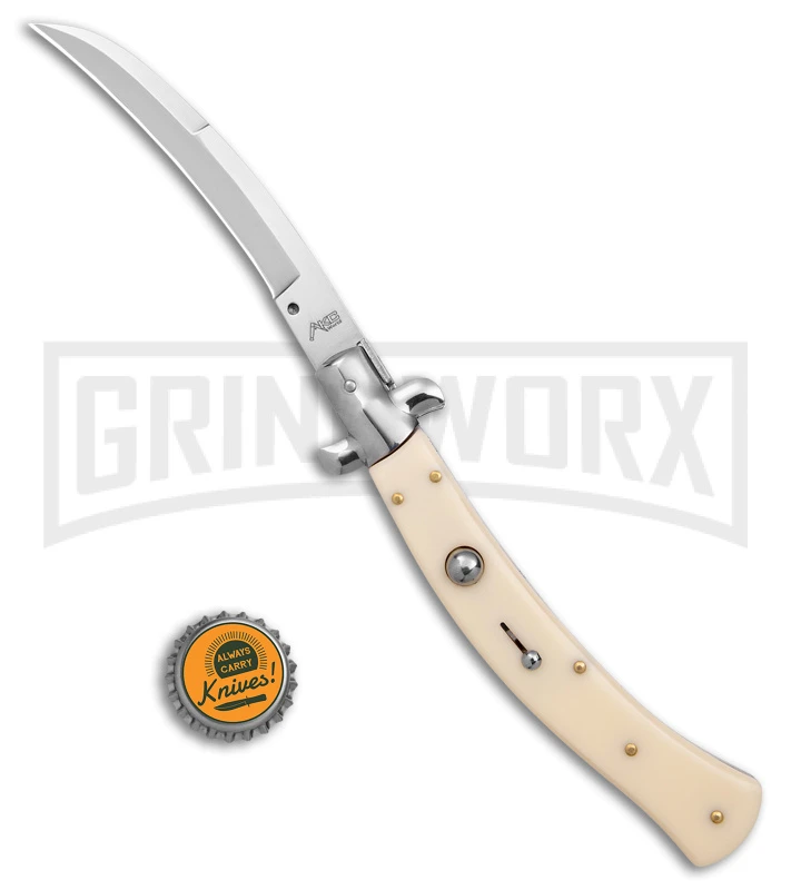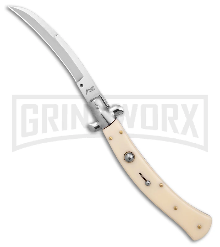 AKC Curved Stiletto Ivory Automatic Knife – Satin Plain
